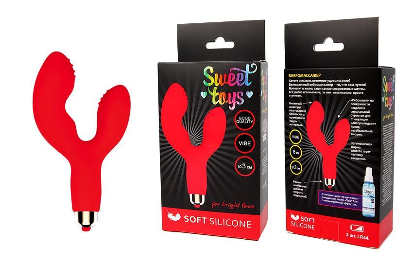 Красный силиконовый вибромассажёр с клиторальным стимулятором