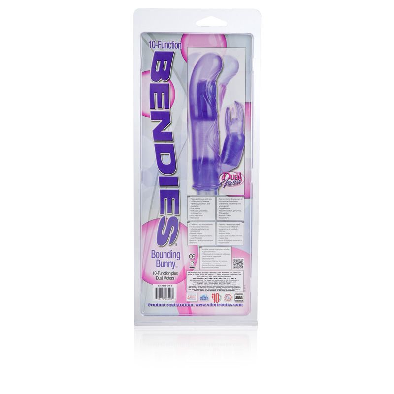 Вибромассажер 10-Function Bendie Bounding Bunny Vibes - гибкая игрушка для максимально дерзких ощущений. Включает в себя функцию стимуляции точки G для максимального чувственного удовольствия. Двойной моторчик с 10 функциями вибрации, пульсации и эскалации для максимального удовлетворения. С мягким силиконовым кнопочным управлением и мгновенной кнопкой включения / выключения. Рабочая длина - 13,25 см.