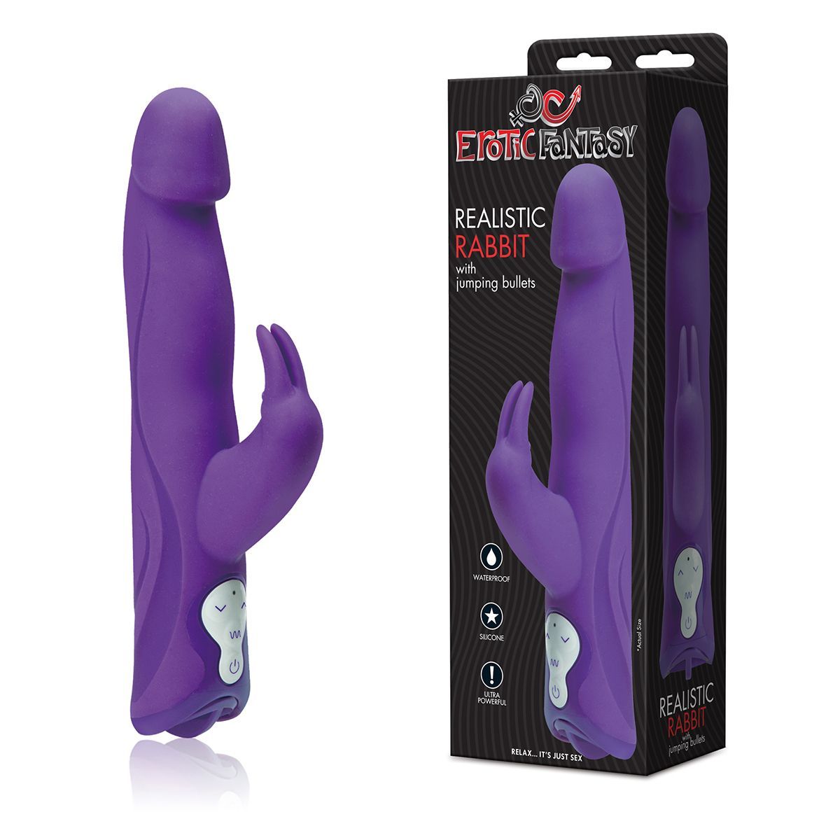 Самый невероятный вибратор с большим набором функций яркого фиолетового цвета. Главное отличие от всех похожих вибраторов, что в игрушке 3 мотора! Имеет 7 режимов, включая прыгающие моторы, когда попеременно включается каждый мотор. Два - в столе вибратора, один - в клиторальном стимуляторе, который выполнен в виде кролика. Игрушка из силикона медицинского качества. Водонепроницаем. Рабочая длина - 13,5 см. Минимальный диаметр - 3 см.