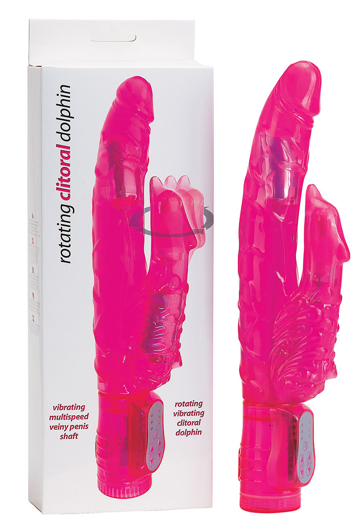 Этот вибратор примечателен не только наличием отростка для клиторальной стимуляции. Этот стимулятор в форме дельфинчика не просто вибрирует, но и вращается! Только представьте, каким восхитительным будет массаж этой эрогенной зоны! Само тельце вибратора поразит вас своим рельефом, проникнет в лоно без остатка, подарит мультискоростную вибростимуляцию стенок вагины.Вибратор водонепроницаемый. Длина - 18,5 см. Диаметр - 3 см.