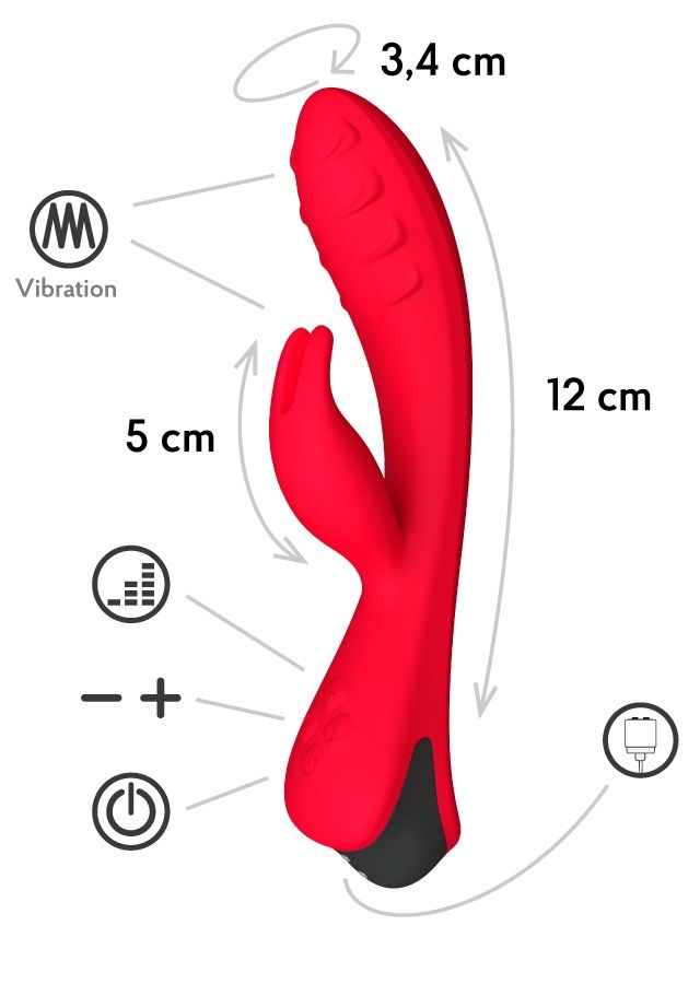 Вибратор-кролик Lepus, пользующийся несомненным успехом у девушек и женщин, выполнен в возбуждающем алом цвете. Талантливо имитируя оральные ласки он дарит наслаждение за наслаждением без пресыщения с помощью встроенного режима оргазма. А рельефный гибкий ствол для внутренней стимуляции длиной 12 см имеет 8 режимов вибрации, которые, несомненного, усилят ощущения! Благодаря магнитной зарядке полностью водонепроницаем. Рабочая длина - 12 см. Время зарядки - 2 часа. Время работы - 2 часа.