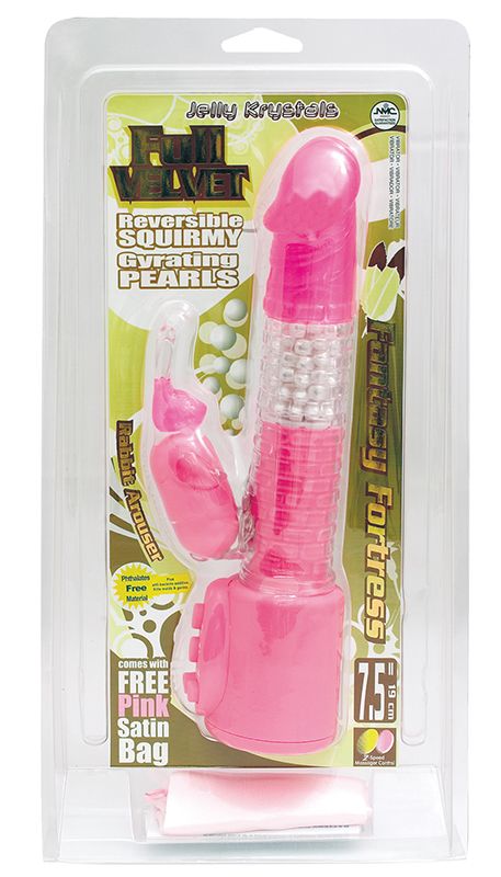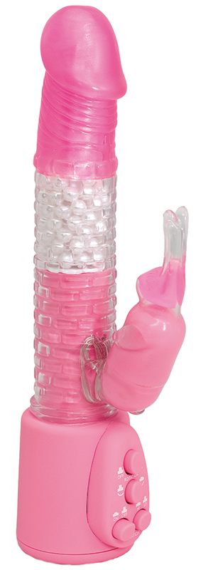 Розовый вибратор с бусинами и виброзайцем FANTASY FORTRESS PINK. Бусины вращаются. 2 режима работы.