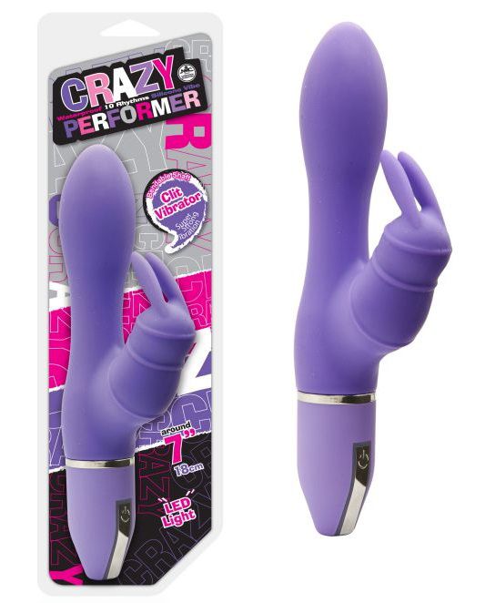 Вибратор с клиторальным стимулятором в форме зайчика, выполненный из материала силикон, 10 режимов вибрации.