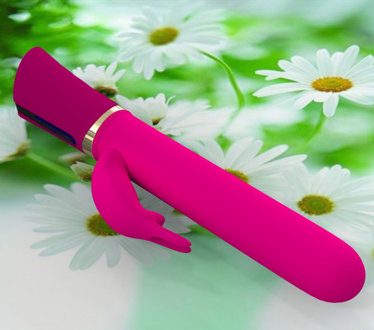 Ярко-розовый вибратор с клиторальным зайчиком. 4 интенсивности вибрации. 3 режима пульсации и 3 режима эскалации. Влагоустойчивый корпус.