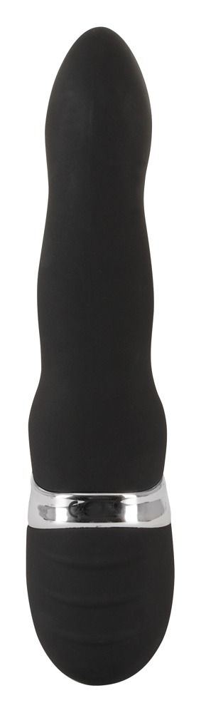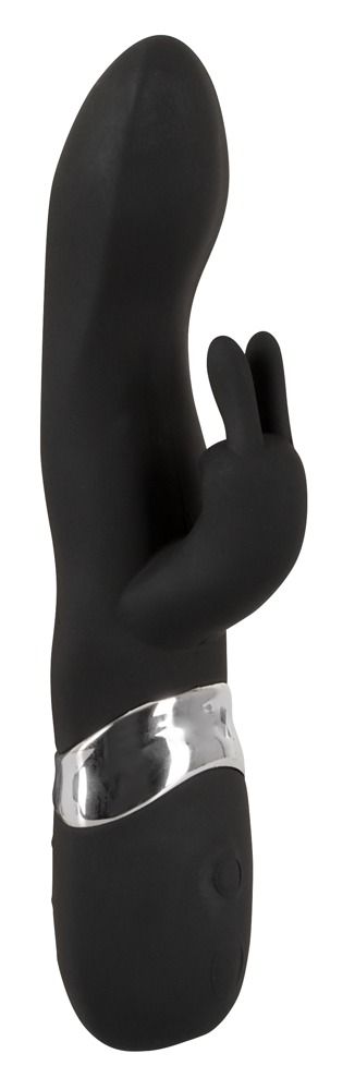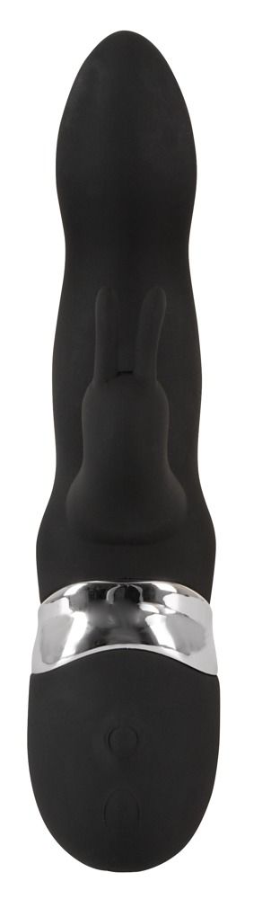 Чёрный перезаряжаемый вибратор с клиторальным отростком Blacky. Бархатистый на ощупь.7 режимов вибрации.