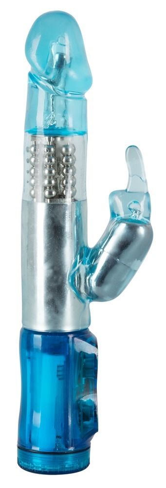 Голубой вибратор Rabbit с ротацией и клиторальным стимулятором. 3 режима ротации, 12 функций вибрации. Рабочая длина - 10 см.