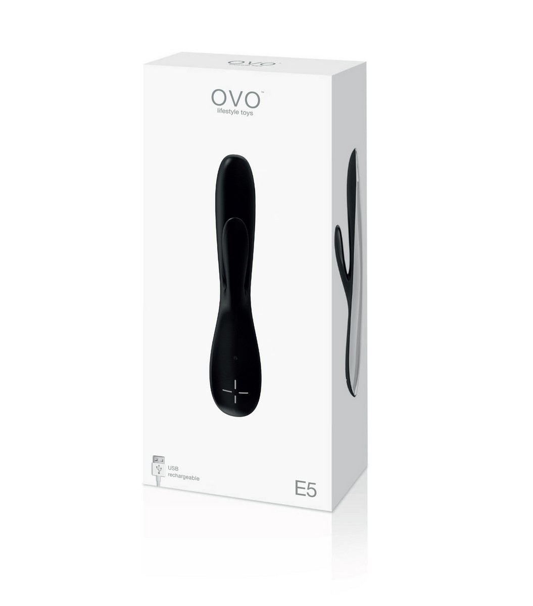 Чёрный перезаряжаемый вибратор типа rabbit OVO E5 BLACK (19 см)