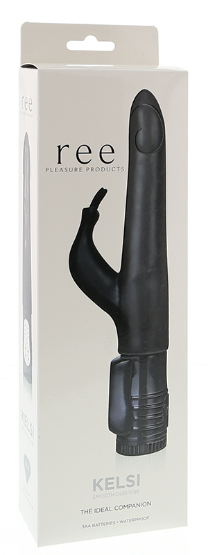 Чёрный вибратор с клиторальным стимулятором Ree Kelsi 350008 (18,5 см)