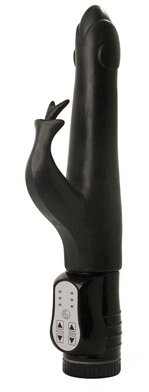 Чёрный вибратор с клиторальным стимулятором