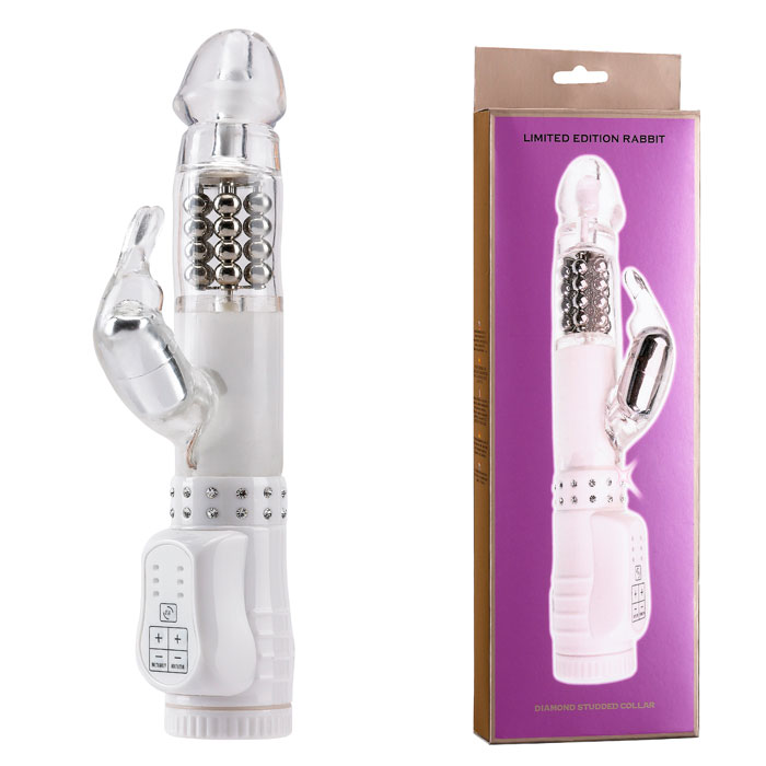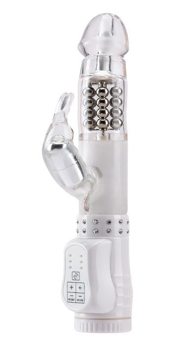 Достаточно одного взгляда на этот вибратор со стразами, чтобы понять – ощущения будут великолепными, как и дизайн секс-игрушки. Мощная вибрация пронзит вас наслаждением до самой последней клеточки тела. Вагинальный отросток заполнит лоно без остатка и вращением шариков, находящихся внутри, распалит желание. Клиторальный отросток в виде зайчика будет дразнить клитор, делая его напряженным. Оргазм не заставит себя долго ждать. Вибратор водонепроницаемый.