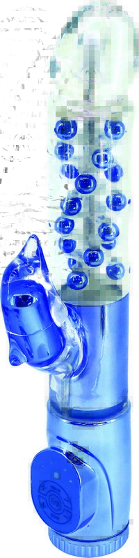 Синий вибратор с клиторальным стимулятором в виде дельфина