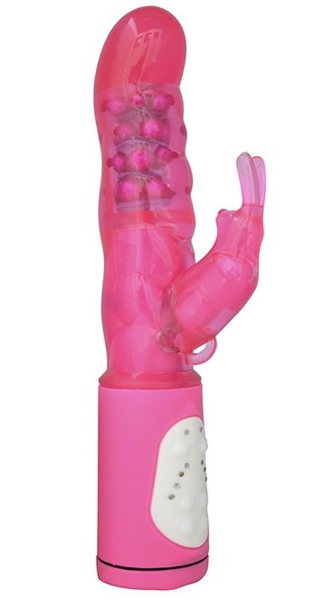 Розовый вибратор с клиторальным стимулятором, 7 режимов вибрации. Рабочая длина - 16 см.