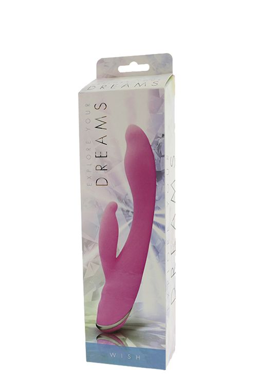 Розовый вибратор с клиторальным отростком EXPLORE YOUR DREAMS WISH. Водонепроницаемый. 7 режимов вибрации.