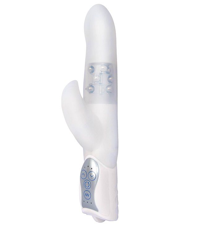 Белый вибратор с клиторальным отростком LAYLA FLORETTE. Водонепроницаемый. Имеет 3 скорости вибрации, 1 эскалации, 3 вращения.