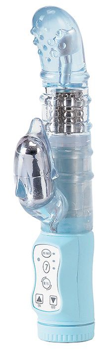 Водонепроницаемый вибратор из нежного силикона с пупырышками для стимуляции G-точки работает в 2-х направлениях и с 3-я скоростями. Клиторальный стимулятор в виде дельфинчика с отдельным вибратором работаем в 7 режимах. Пульт управления с красными индикаторами - для удобства переключения в ночное время. Рабочая длина - 14 см.