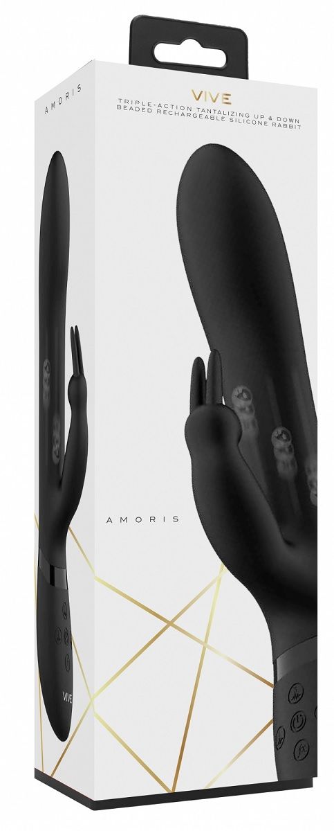 Amoris – вибромассажер-кролик в классическом исполнении. Он изготовлен из высококачественного, мягкого, нежного на ощупь 100% медицинского силикона с пылеотталкивающими свойствами и прочного, элегантного АБС-пластика. Вибромассажер оснащен инновационными электродвигателями нового поколения F1. Преимущество такого типа двигателя в том, что он делает интенсивную стимуляцию очень мягкой даже при мощном максимальном воздействии. Игрушка имеет три мощных отдельных мотора, каждый из которых обеспечивает 10 функций вибрации, способной достигать 9200 и 10000 оборотов в минуту. Это дает возможность настраивать более чем 1000 уникальных комбинаций. Вибромассажер имеет необыкновенную функцию «мгновенный оргазм», при которой нажатие одной кнопки возводит интенсивность вибрации к максимальной точке. Вибромассажер подходит для вагинально-клиторальной стимуляции. Функция «мгновенный оргазм» дает возможность получения быстрого и/или очень сильного удовольствия. За счет вращающихся бусин идеален для стимуляции влагалища, в сочетании с клиторальной стимуляцией. Вибромассажер полностью водонепроницаем, а это значит, что его можно смело использовать в ванной или душе. Вибромассажер заряжается через USB и может быть подключен практически в любом месте. Просто подсоедините идущий в комплекте шнур к совместимому порту компьютера или USB-адаптера (приобретается отдельно), а противоположный конец с магнитной зарядкой к игрушке. Полная зарядка занимает 180 минут, ее достаточно для беспрерывной работы до 60 минут. Рабочая длина - 13,5 см.
