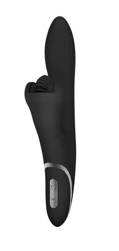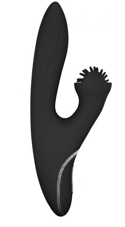 Чёрный вибратор с клиторальным стимулятором-колёсиком