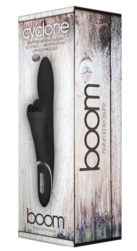 Чёрный вибратор с клиторальным стимулятором-колёсиком Shots Media BV BOOM Cyclone BOOM013BLK (23 см)