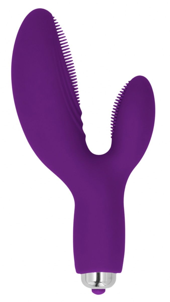 Силиконовый вибратор c клиторальным отростком. Имеет 10 режимов вибрации, лёгкое управление при помощи кнопки в основании игрушки. Главное достоинство данного вибратора кроется в мягких усиках. Рабочая длина - 7,5 см.