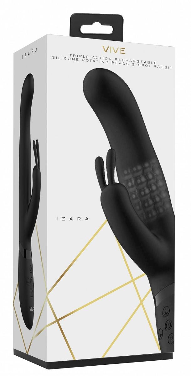 Чёрный вибромассажёр-кролик Shots Media BV Izara VIVE014BLK (22 см)