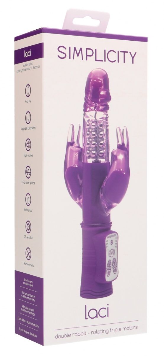 Вибромассажер с функцией вращения ствола и двумя стимуляторами в виде кроликов. Мягкий, имеет не пористую структуру. Вибрирующий верх может вращаться в 4 разных ритмах, а два отростка касаются одновременно клитора и ануса. Имеет 8 режимов вибрации. Рабочая длина - 11 см.