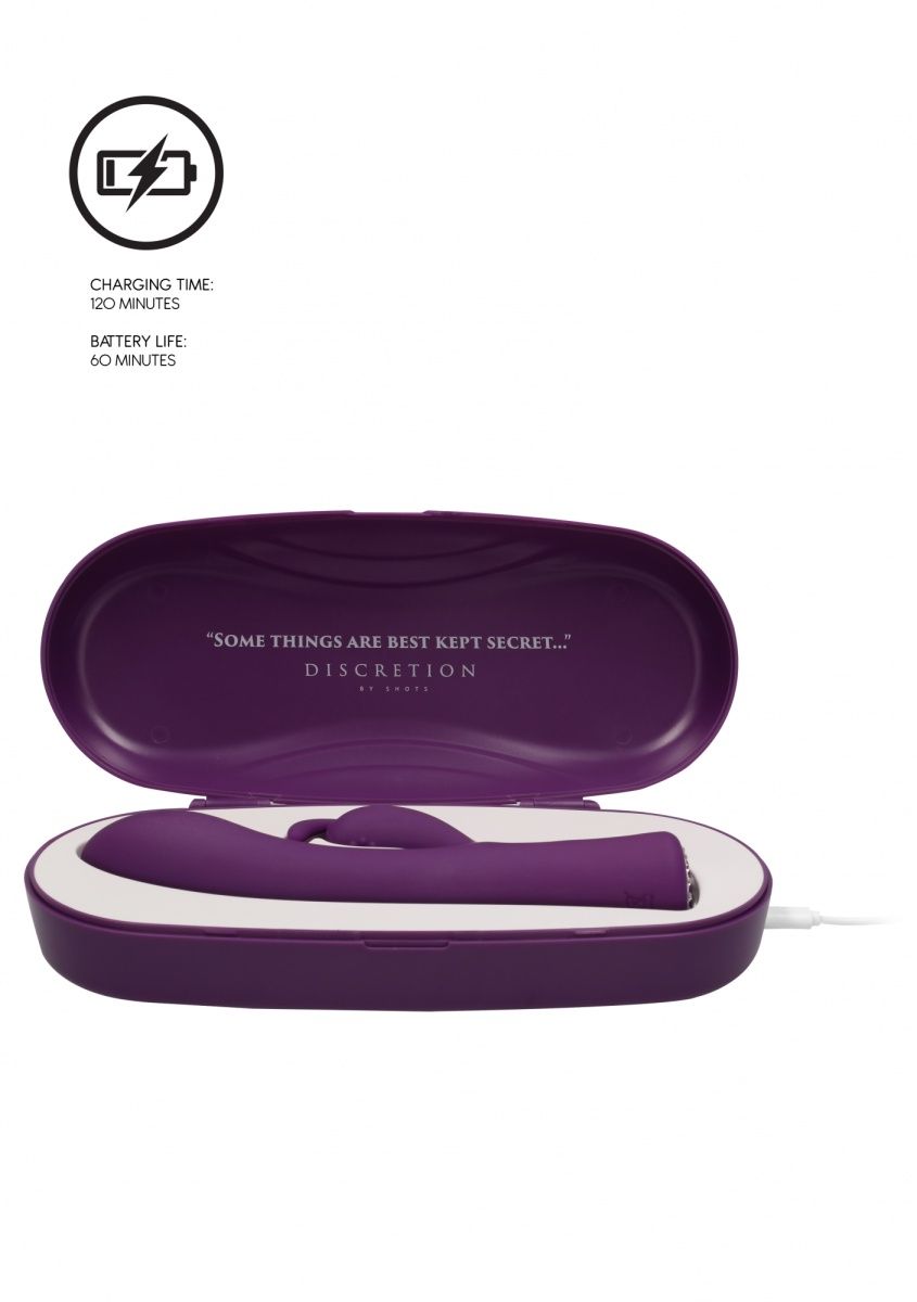 Lux - вибромассажер кролик с двумя инновационными электродвигателемями нового поколения F1. Они делают интенсивную стимуляцию очень мягкой даже при мощном максимальном воздействии. Располагаются электродвигатели по одному в каждом отростке. Игрушка имеет 10 режимов вибрации, способной достигать 8500 оборотов в минуту. Вибромассажер имеет очень гибкие и эластичные отростки с рельефной поверхностью для дополнительной стимуляции, идеально подстраивающиеся под анатомию тела. Discretion представляет собой сочетание высоких технологий и роскоши ювелирных украшений. Эта изящная интимная игрушка оснащена на манер современных электронных устройств. Вместо обычной коробки все изделие представлено в стильном компактном портативном кейсе в оттенке самого девайса. Абсолютно гладкая и обтекаемая поверхность имеет кнопки управления из сверкающих кристаллов, имитирующих бриллианты. Ещё одним преимуществом является полная водонепроницаемость. Вибромассажер заряжается от футляра, который может быть подключен практически в любом месте, просто подсоедините идущий в комплекте шнур к совместимому порту компьютера или USB-адаптера (приобретается отдельно). Полная зарядка занимает 120 минут, ее достаточно для беспрерывной работы до 60 минут. Рабочая длина - 11,5 см.
