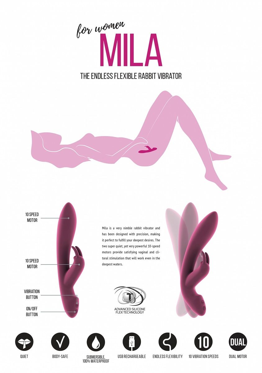Очень гибкий вибратор с клиторальным отростком из медицинского силикона, который быстро достигает температуры тела. Идеально подстраивается под формы вашего тела. Очень тихий и мощные два моторчика с десятью режимами вибрации. Легко управлять одной рукой. Рабочая длина - 14,1 см.