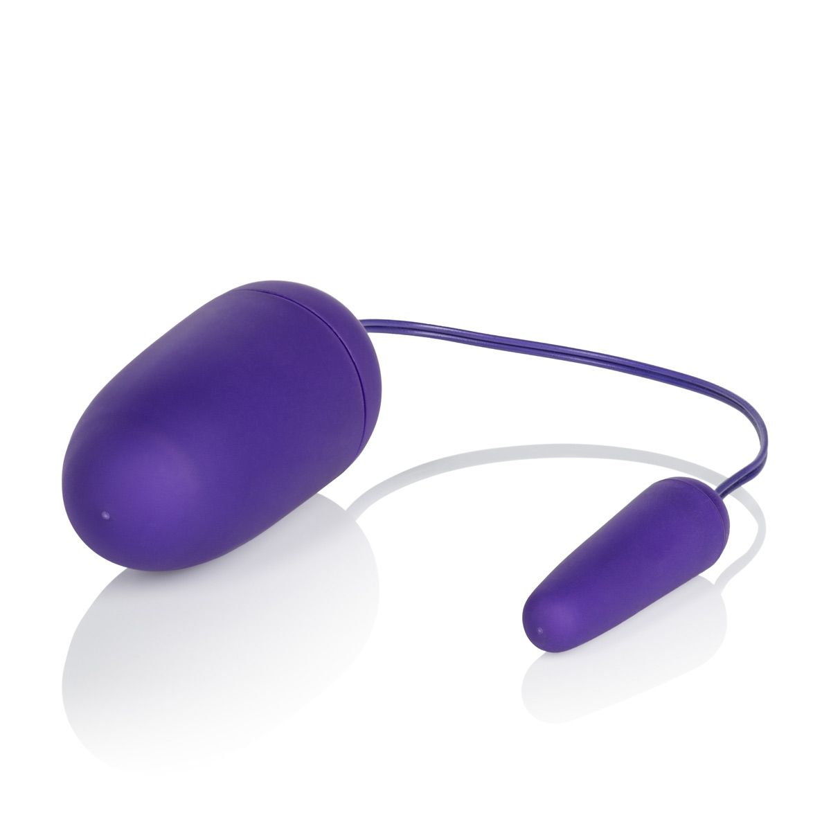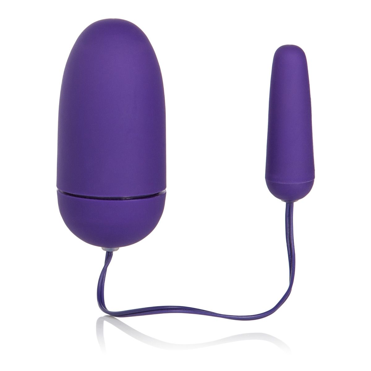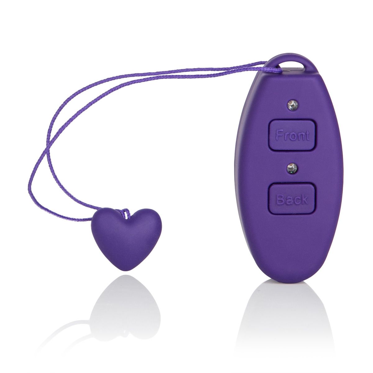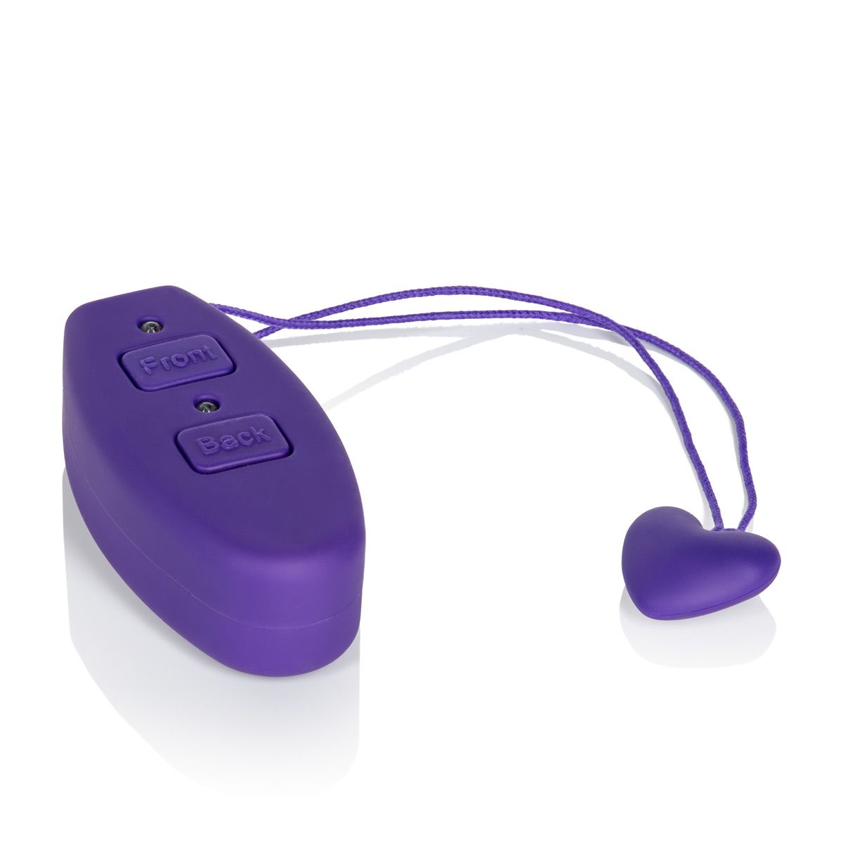 Оригинальный двойной вибромассажер на радиоуправлении. Большое виброяичко для вагинальной стимуляции соединено проводком с тонкой пулей для анального проникновения. Вибрация двух виброяичек регулируется разными кнопками. Набор выполнен из пластика с бархатистым покрытием Velvet Cote. Пульт управления с маленьким кулоном в виде сердца. Длина анальной вибропули - 5 см., диаметр - 1 см.