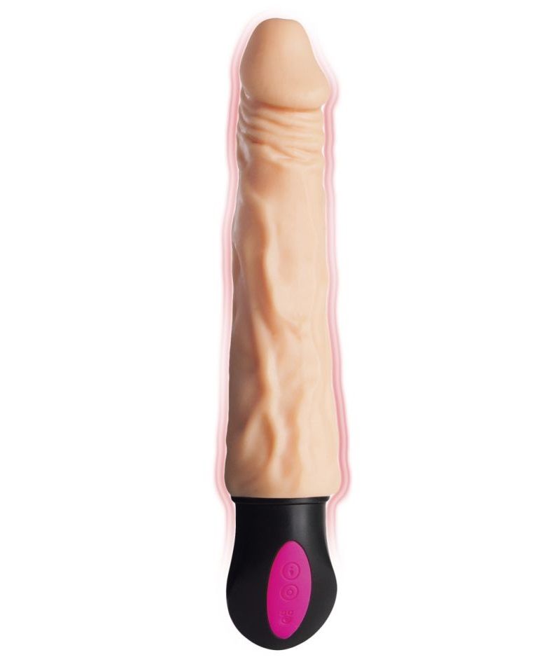 Гибкий вибратор, который способен нагреваться во время использования с помощью прочного нагревательного элемента, расположенного в головке игрушки. Вибратор выполнен из высококачественного, легкого в эксплуатации, нетоксичного, гипоаллергенного, не пористого материала TPE, внешне и на ощупь схожего с текстурой кожи человека. 12 режимов вибрации будут сопровождаться нежным теплом до 42 градусов. Вибратор можно непрерывно использовать в течение 2 часов даже в ванной в душе, ведь он абсолютно водонепроницаем. Минимальный диаметр - 2,1 см. Общая длина изделия, см 25 см Рабочая длина, см 19 см