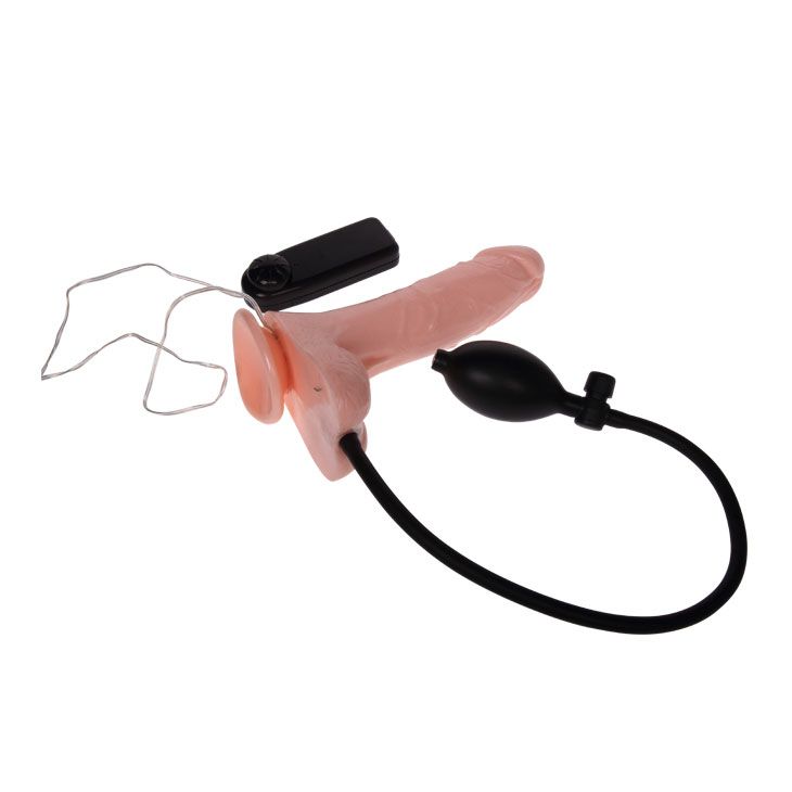 Реалистичный вибратор с функцией расширения. Управление вибрацией осуществляется при помощи выносного пульта. Подкачка - с помощью встроенного в основание шланга с грушей. Рабочая длина - 14,5 см.