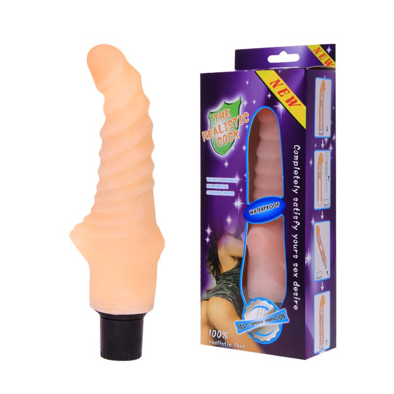 Ребристый водонепроницаемый вибромассажёр телесного цвета Baile BW-027019-1002S (21 см)