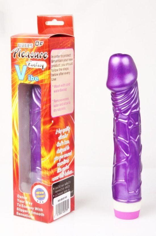 Фиолетовый вибратор Pleasure Fantasy с богатым рельефом. Мультискоростная вибрация. Рабочая длина - 20 см.