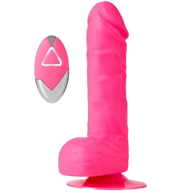 Розовый вибратор-реалистик на присоске и с пультом ДУ PURRFECT SILICONE DELUXE REMOTE VIBE 7IN. 10 режимов вибрации. Водонепроницаемый.