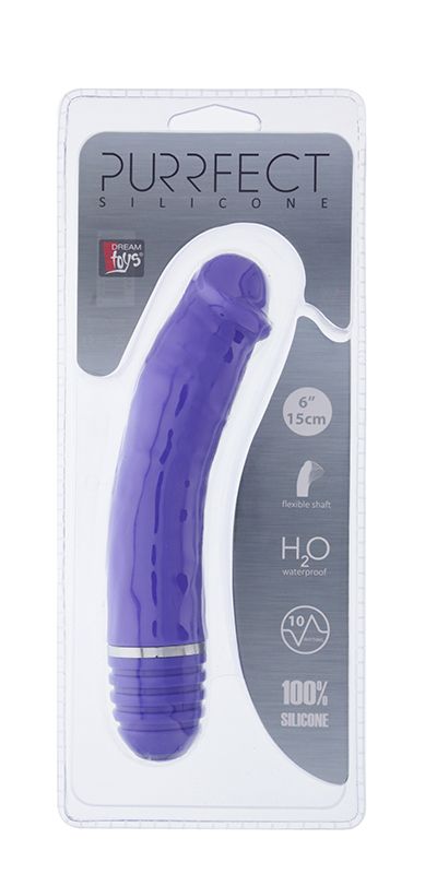 Фиолетовый вибратор-реалистик PURRFECT SILICONE VIBRATOR 6INCH PURPLE. 10 режимов вибрации. Водонепроницаемый. Рабочая длина – 15 см.