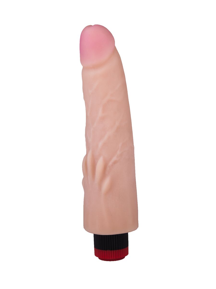 Вы точно оцените этот телесный вибромассажёр по достоинству. Он имеет форму среднего по размерам члена с ярко выраженной розоватой головкой. Очень приятный на ощупь, фаллос выполнен из неоскина, передающего мягкость и текстуру кожи. Игрушка не имеет швов и радует мощной мультискоростной вибрацией по всей длине изделия. Ближе к основанию на податливом тельце имеются продолговатые выступы, усиливающие растяжение на входе в лоно.