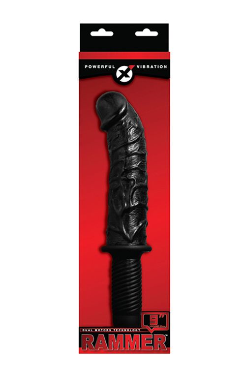 Черный вибратор-реалистик RAMMER с рукоятью. Ярко выраженный рельеф поверхности. Мощные моторы, гарантирующие 10 режимов вибрации и 4 интенсивности. Рабочая длина - 22 см.