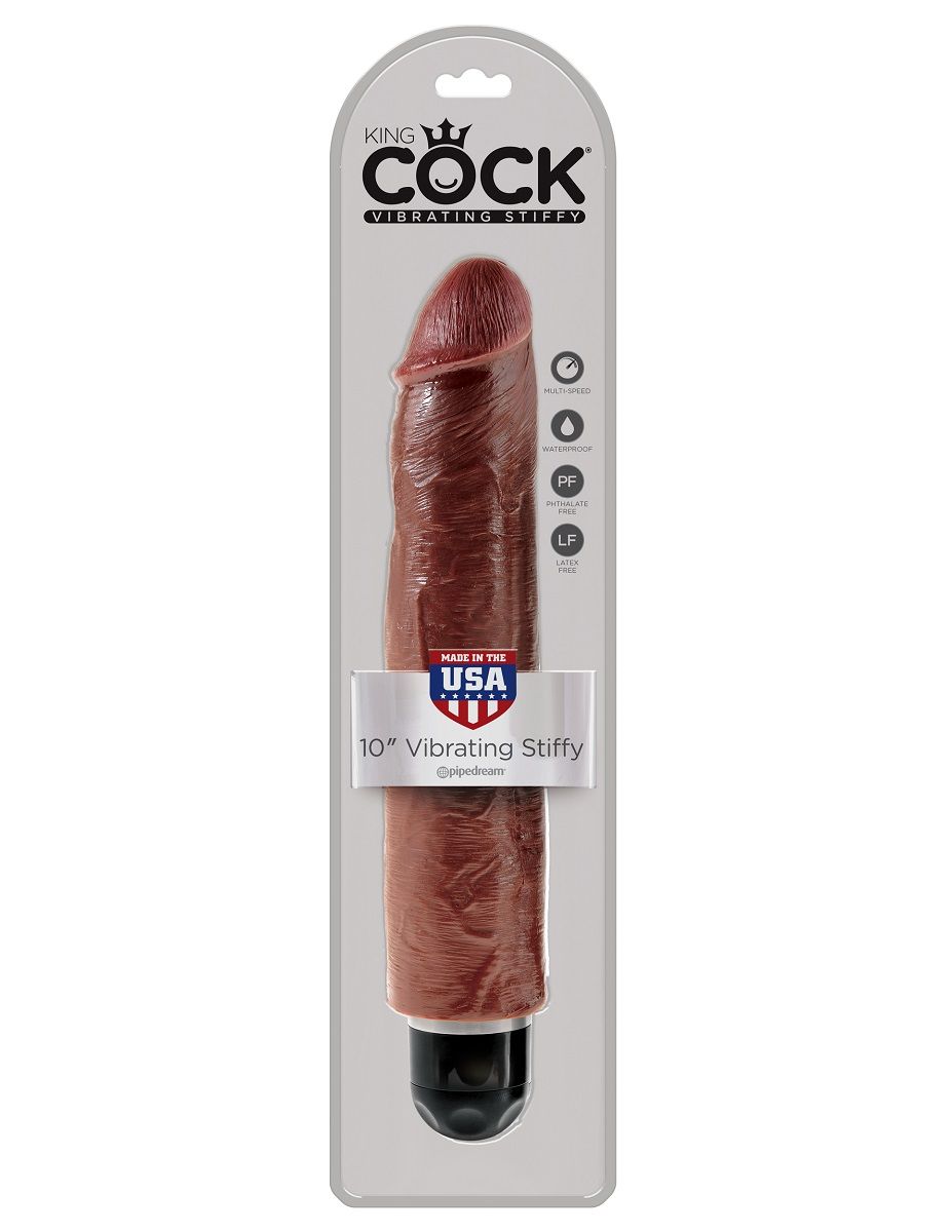 Вибратор-реалистик 10 Vibrating Stiffy выполнен из реалистичного на ощупь материала в будоражащем фантазии коричневом цвете. Представляет собой дуэт классического вибратора с мультискоростной вибрацией, управляемой поворотом колёсика, и мягкой насадки с красивым рельефом поверхности. Ещё одно достоинство игрушки - водонепроницаемость пластикового корпуса, благодаря которой насладиться чувственными проникновениями можно и в душе. Рабочая длина - 25,4 см.