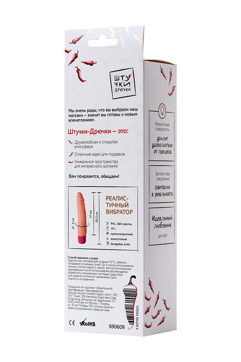 Вибратор «Штучки-Дрючки» своим размером, легкой сеточкой вен и приятной слегка очерченной головкой невероятно натурально имитирует настоящий половой член. Эта дрючка-заменитель позволит воплотить сексуальные фантазии в реальность. С ней твое удовольствие в твоих руках. Рабочая длина - 17 см. Минимальный диаметр - 3 см.