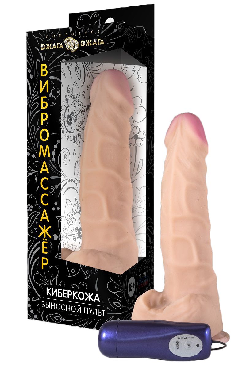 Вибромассажёр из киберкожи с выносным блоком управления телесного цвета