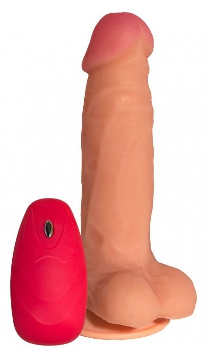 Реалистичный дизайн, анатомическая форма, точь-в-точь такой же, как и кожа человека – бархатистый на ощупь, мягонький и упругий. Выполнен из материала неоскин, обладающий уникальными свойствами по пластичности. С мошонкой. С выносным пультом управления, удобная подошва на присоске позволяет использовать его даже на вертикальных поверхностях. Выносной кнопочный пульт управления с 12 режимами вибрации - непрерывные (3 режима), волнообразное, пульсирующие (8 режимов). Рабочая длина - 14,5 см.