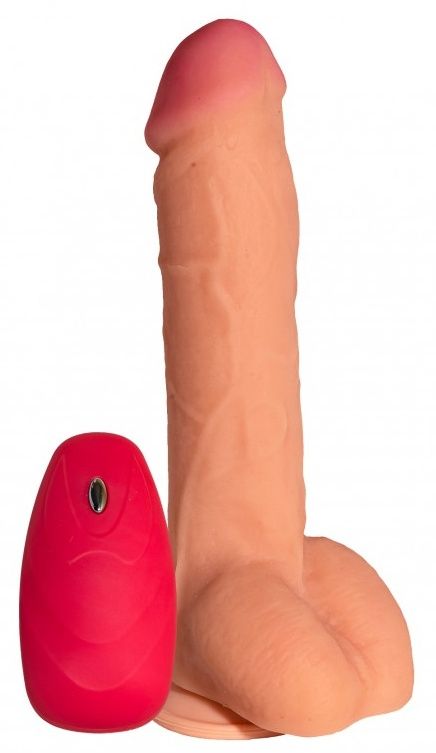 Реалистичный дизайн, анатомическая форма, точь-в-точь такой же, как и кожа человека – бархатистый на ощупь, мягонький и упругий. Выполнен из материала неоскин, обладающий уникальными свойствами по пластичности. С мошонкой. С выносным пультом управления, удобная подошва на присоске позволяет использовать его даже на вертикальных поверхностях. Выносной кнопочный пульт управления с 12 режимами вибрации- непрерывные (3 режима), волнообразное, пульсирующие (8 режимов). Рабочая длина - 19 см.