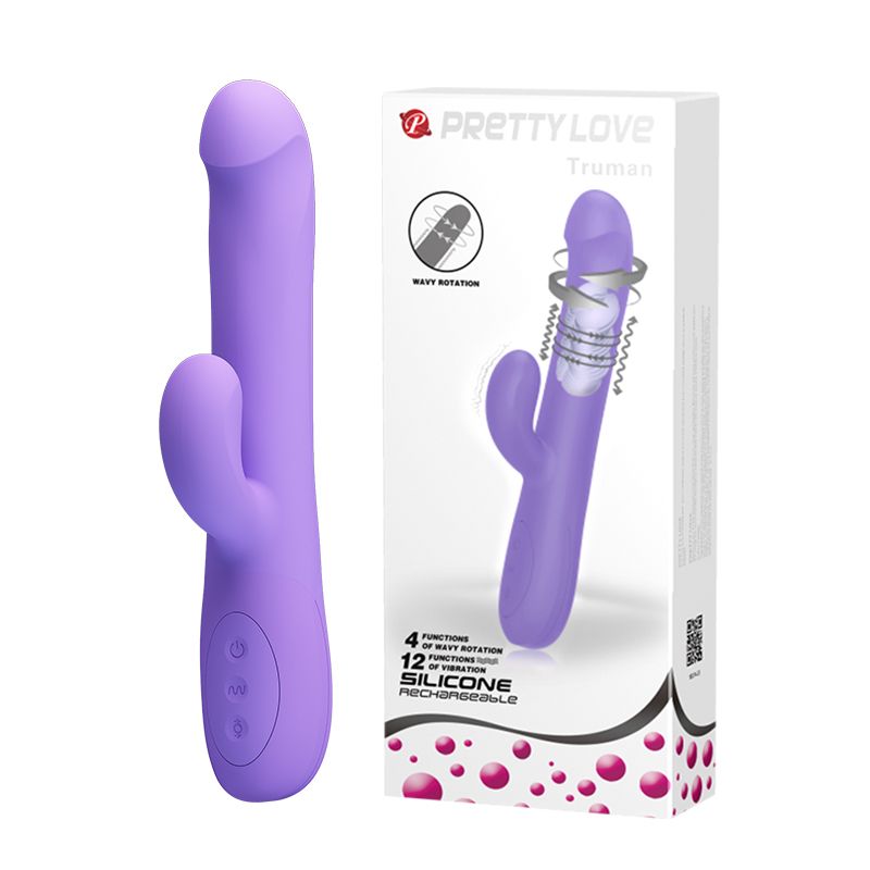 Сиреневый вибратор-ротатор Truman. Перезаряжаемый вибратор выполнен из нежнейшего силикона, имеет 12 режимов вибрации и 4 мощных режима вращения головки и ствола. Рабочая длина - 13,5 см.