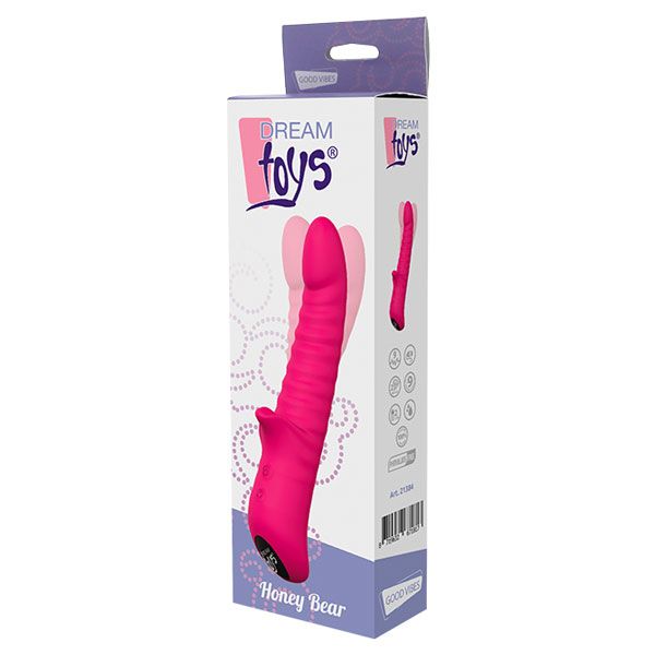 Этот водонепроницаемый вибратор имеет слегка изогнутую форму и удлинение чуть выше кнопок, которые будут стимулировать клитор. Honey Bear предлагает на выбор 9 моделей вибрации, а также 9 различных программ вращения. Не требует батареек и заряжается с помощью USB-провода (в комплекте). Рабочая длина - 12,5 см.