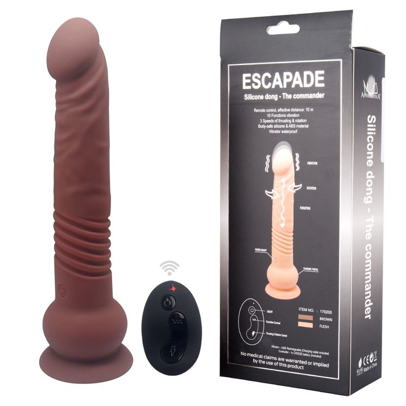 Реалистичный вибратор The commander имеет ярковыраженную головку и рельеф на стволе. Он имеет 10 режимов вибрации, 3 скорости ротации и пульсации. Режимы управляются при помощи выносного пульта. Вибратор водонепронецаем. Изготовлен из медицинского силикона, перезаряжается от USB-провода (зарядка входит в комплект). Выносной пульт работает от 1 батарейки (есть в комплекте). Рабочая длина - 19 см.