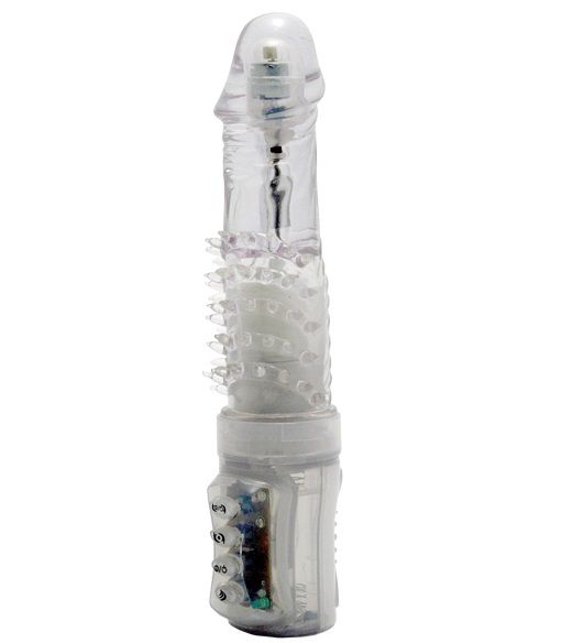 Прозрачный вибратор-ротатор с шипами в основании