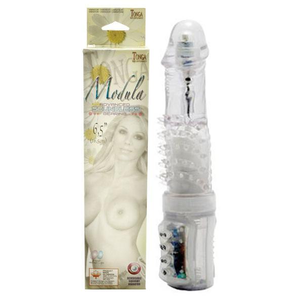 Прозрачный вибратор-ротатор с шипами в основании Tonga Modula 310083 (16,5 см)