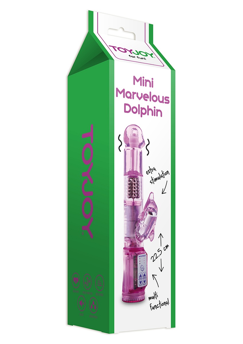 Вибратор с двойной стимуляцией. Имеет три скорости вибрации, три скорости вращения и имеет кнопку для изменения направления вращения. Многофункциональная головка и отросток для стимуляции клитора в виде дельфина подарят вам божественную стимуляцию эрогенных зон. Металлические шарики внутри вращаются и создают дополнительные вибрации. Все это легко управляется при помощи кнопок. Используйте смазку и наслаждайтесь!