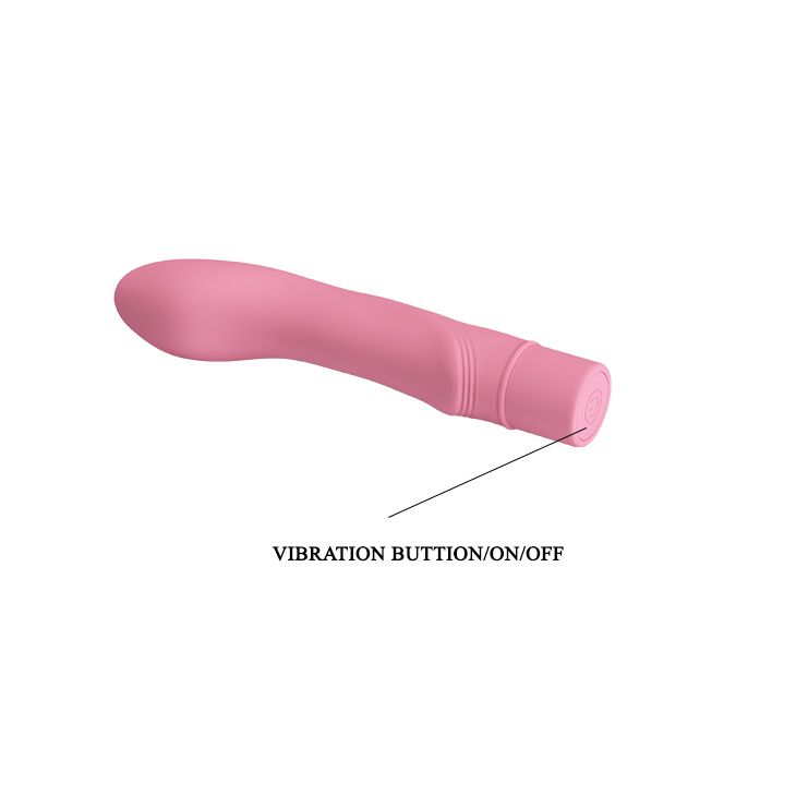 Вибратор нежного цвета с чуть загнутой головкой способен прекрасно стимулировать точку G. Изготовлен из силикона, приятен на ощупь. Имеет 10 режимов вибрации. Режимы переключаются при помощи кнопки в основании игрушки.