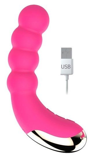 Ярко-розовый силиконовый изогнутый вибромассажёр с 10 режимами вибрации