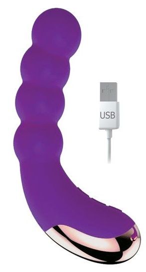 Фиолетовый силиконовый изогнутый вибромассажёр с 10 режимами вибрации